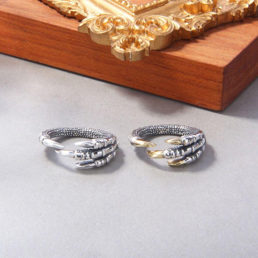 Detail Mxbeauty Pria Terbuka Cincin Halus Retro Jari Cincin Niche Desain Cakar Naga Alloy Gaya Korea Cincin