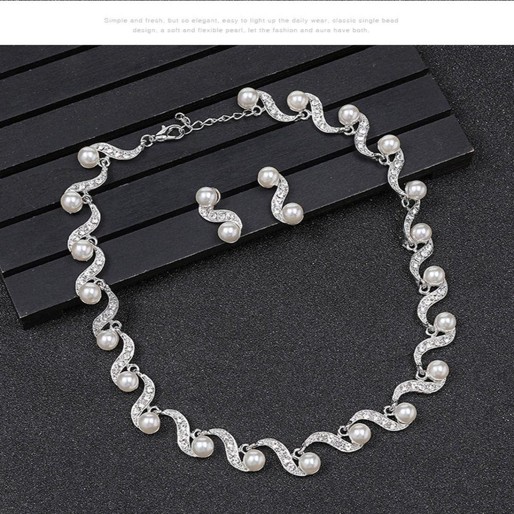 Aksesoris Fashion > Set & Paket Aksesoris > Mxbeauty Set Perhiasan Pernikahan Pengantin Bergaya Temperamen Indah Mutiara Hadiah Anniversary Bunga Daun Gaya Korea Drop Earrings Menjuntai Earrings