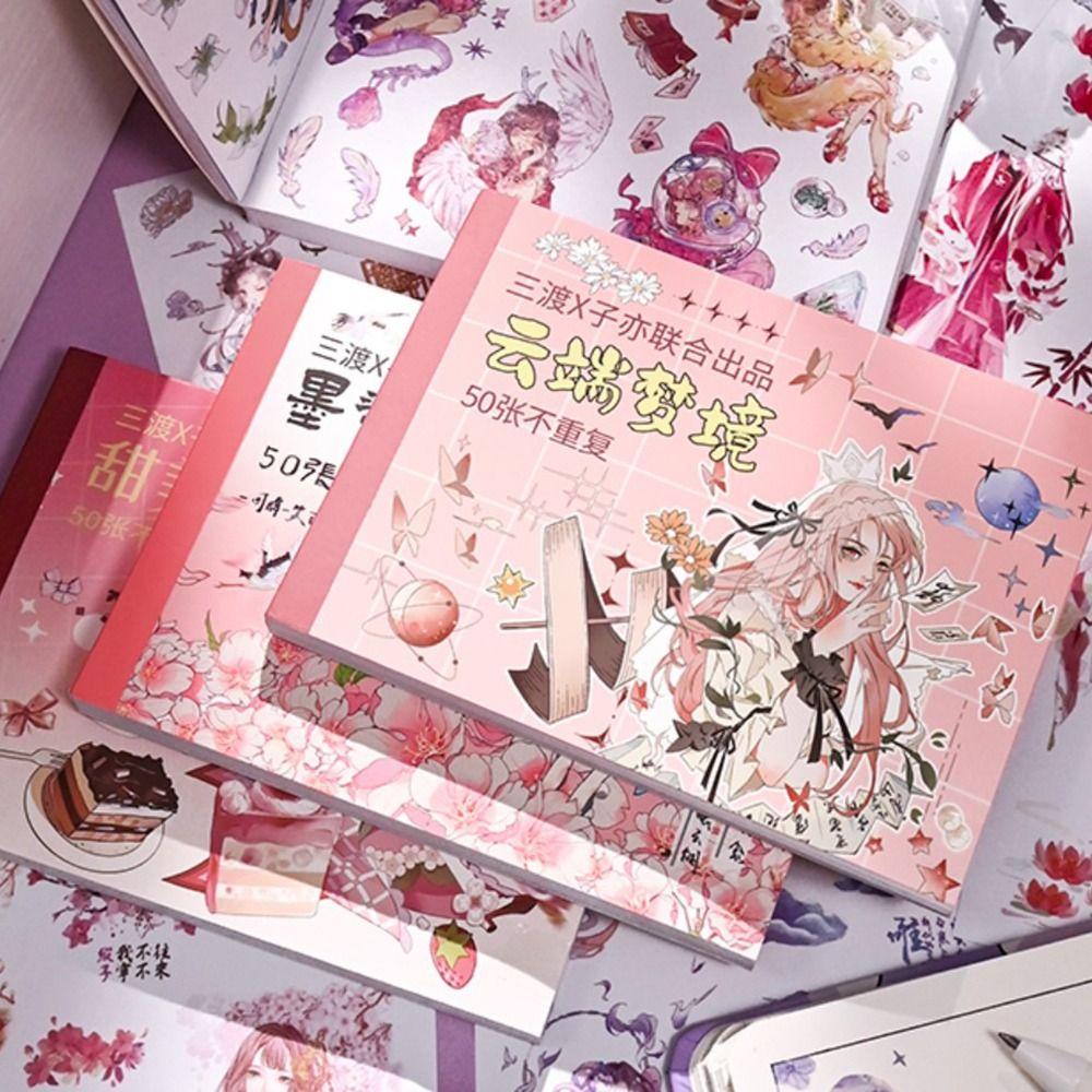 Buku & Alat Tulis > Buku Tulis & Kertas > Label & Stiker > Mxbeauty Stationery Sticker Buku Perekat Diri 50lembar DIY Stiker Hias Hadiah Siswa Album Foto Jurnal Sumber Bahan Decals