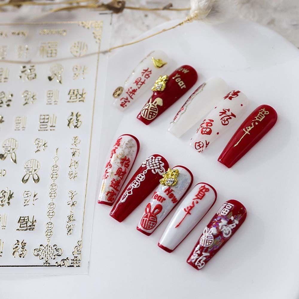 Perawatan & Kecantikan > Perawatan Kuku > Nail Art & Sticker > Mxbeauty Stiker Kuku Tahun Baru Cina DIY Nail Art Fashion Tahun Baru Nail Art Manicure Aksesoris Perekat Diri Dekorasi Nail Art