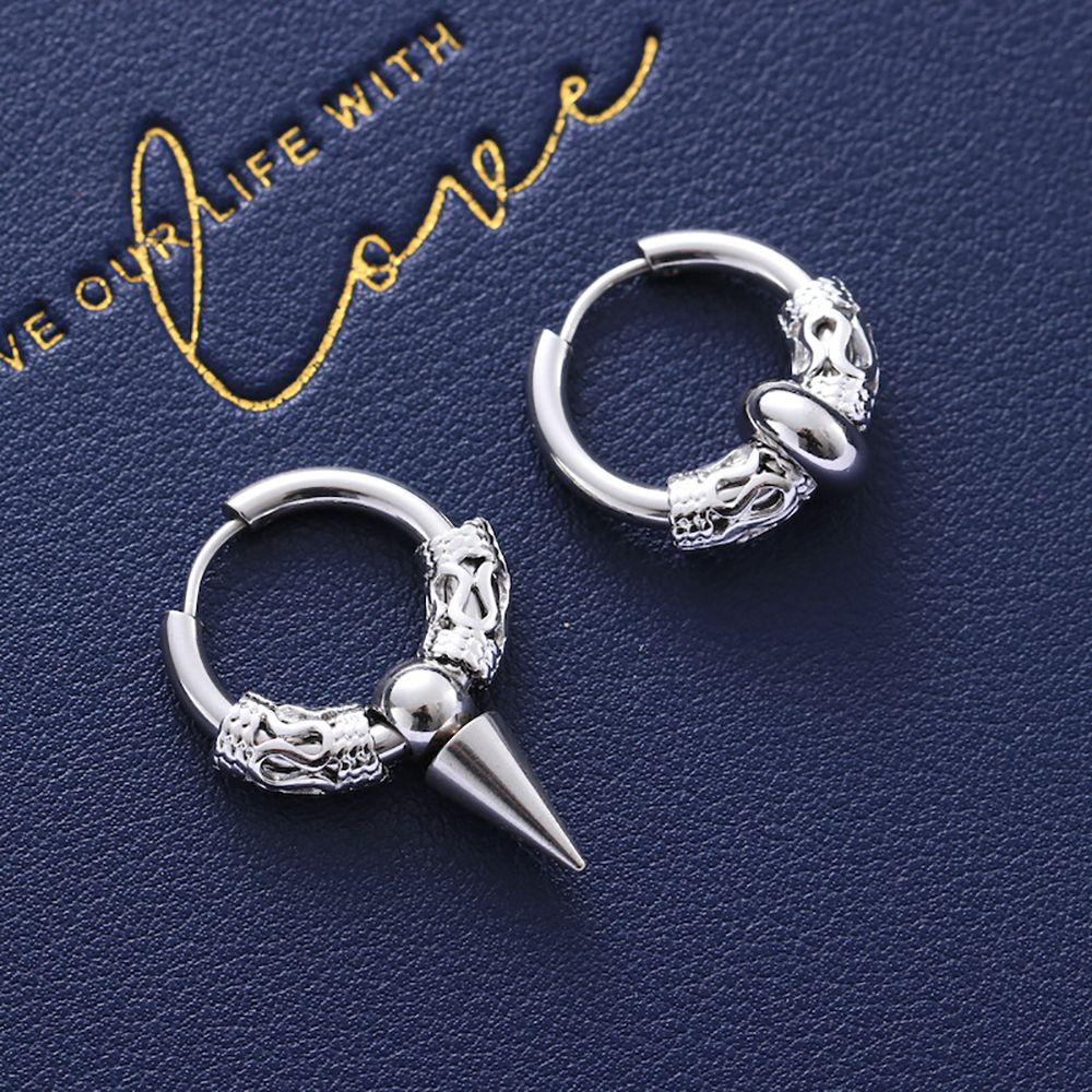 Aksesoris Fashion > Anting > MXBEAUTY Unique Dragon Earring Hip Hop Ear Buckle Male Hoop Earring Punk Stainless steel Men Korean Cool Female Fashion Jewelry