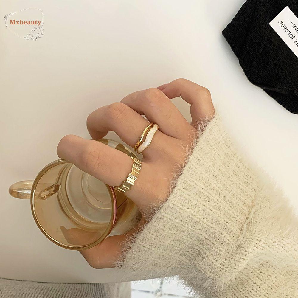 Paket termasuk: 1 Pcs Cincin Wanita Shell Cincin Gaya Korea Cincin Fashion Perhiasan Double-Layer Berlian Imitasi Terbuka Logam Mewah Elegan Sederhana Emas Fashion Perancis Hadiah