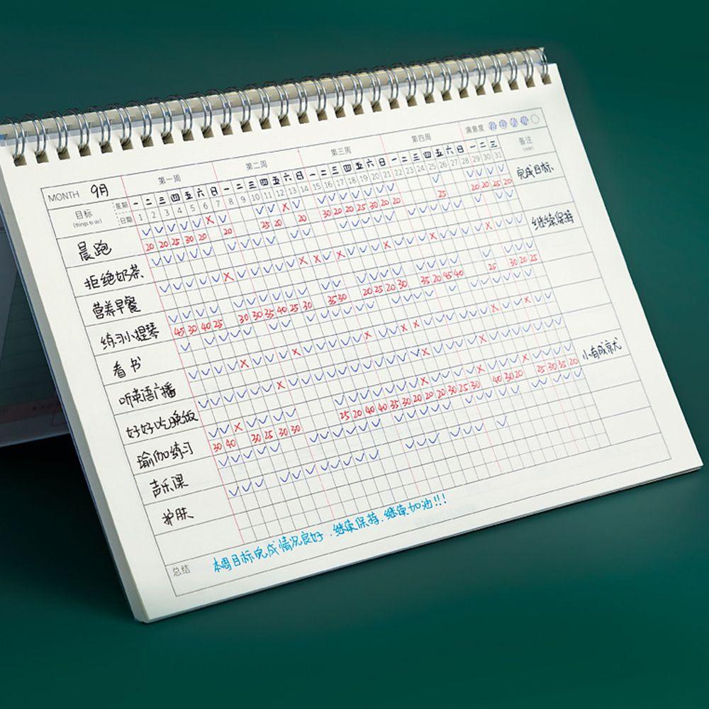 Warna asli mungkin sedikit berbeda dari gambar karena resolusi layar komputer, kecerahan, kontras, dll. Perencana Bulanan Mingguan Check-in Planner Spiral Notebooks To-Do List Calendar Memo Pad Notepad Perlengkapan Alat Tulis Kantor Jadwal Manajemen Waktu Agenda Buku Harian Sekolah Siswa Disiplin Diri B5