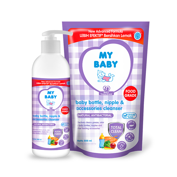 MY BABY Bottle Nipple & Baby Accessories Cleanser dengan formula Food Grade, aman untuk bayi dan lembut di tangan. Efektif membersihkan sisa susu dan makanan yang menempel pada botol susu, dot dan perlengkapan makan bayi, sehingga menjadikannya bersih higienis. Dapat juga digunakan untuk membersihkan sayuran dan buah.