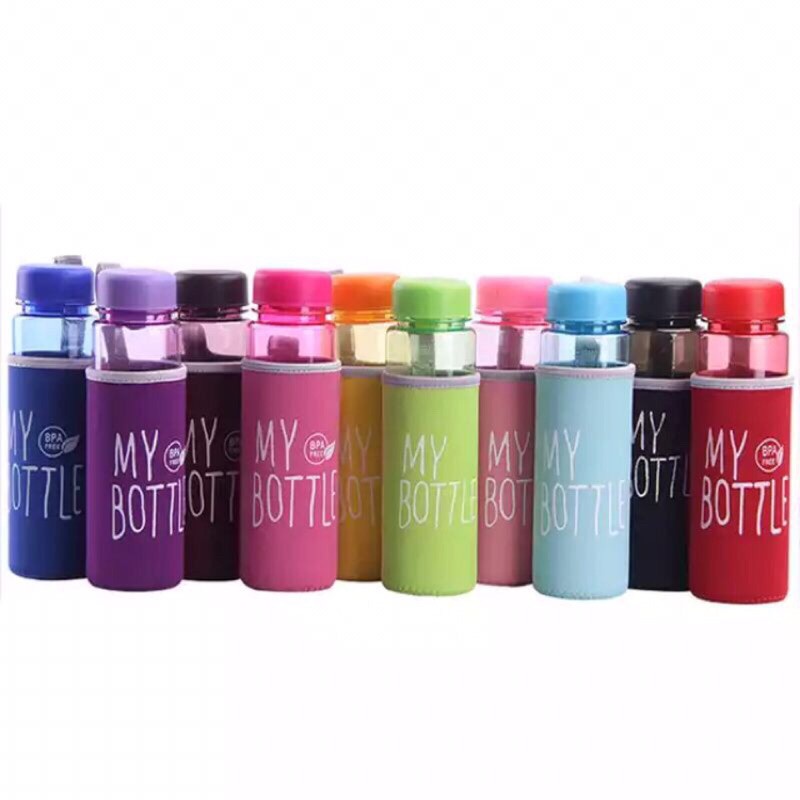 Detail My Bottle Transparant / Botol Minum My Bottle Plus Sarung Pouch Busa BPA FREE