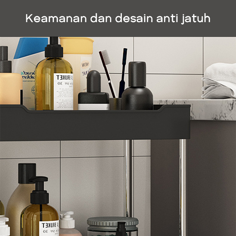 📜 Spesifikasi / Specification: Bahan: Plastik / PP / Baja tahan karat(Tabung yang didukung) Warna: Hitam/Putih Jumlah lapisan: 2 LAYERS / 3 LAYERS / 4 LAYERS Fungsi: Pemasangan tanpa lubang penge Ukuran/Berat: 2 lapisan: 40x15x31cm / 800g 3 lapisan: 40x15x61cm / 1300g 4 lapisan: 40x15x87cm / 1650g Skenario aplikasi: dapur, kamar mandi,etc Ukuran paket: 2 lapisan: 41 x 23.5 x 10cm 3 lapisan: 41 x 23.5 x 15cm 4 lapisan: 41 x 23.5 x 20cm