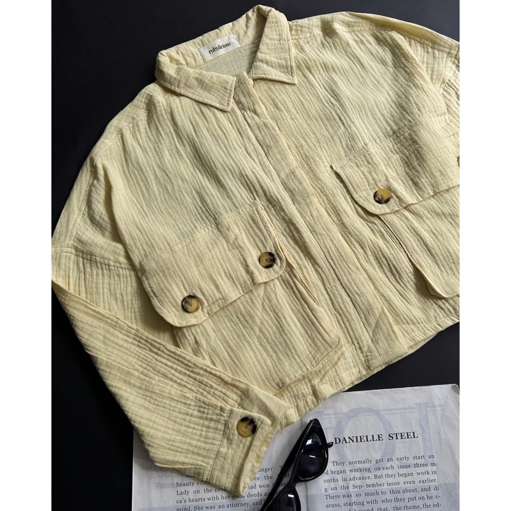 Panjang 49 cm Lingkar Dada 110-124 cm Lingkar Lengan 50 cm Panjang Tangan 63 cm materian cotton muslin ALL SIZE(BEST FIT S TO XL)