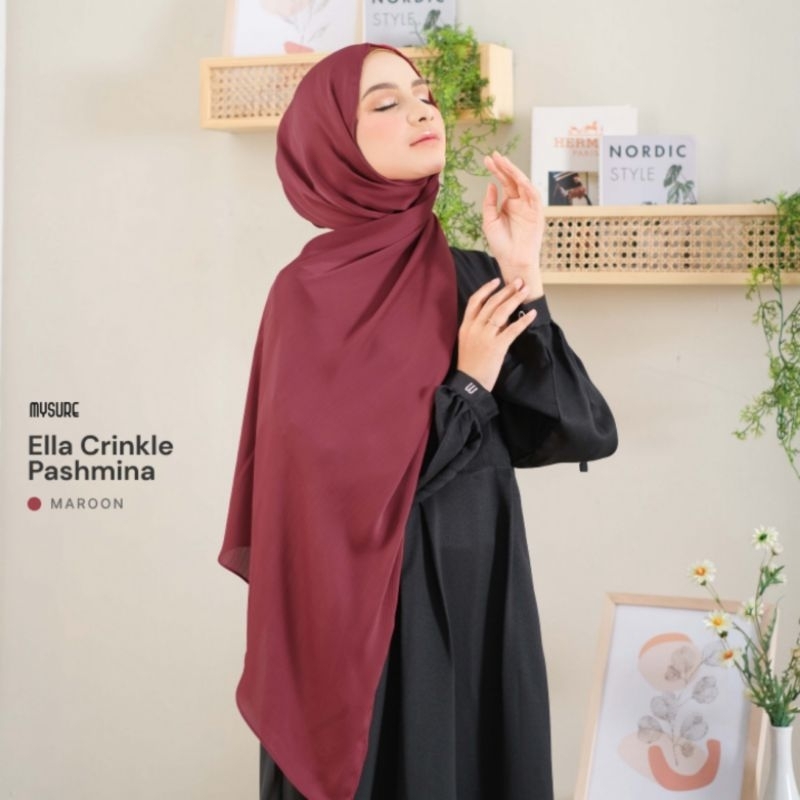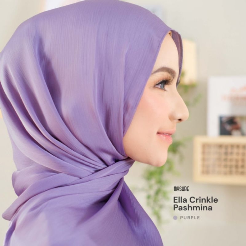 Menggunakan bahan unik dengan tekstur crinkle abstrak. Terlihat sedikit shiny. Bahannya yang ringan membuat nyaman, tidak menekan telinga. Ella Crinkle Pashmina, dapat kamu kenakan pada acara spesial ataupun sebagai daily hijab.