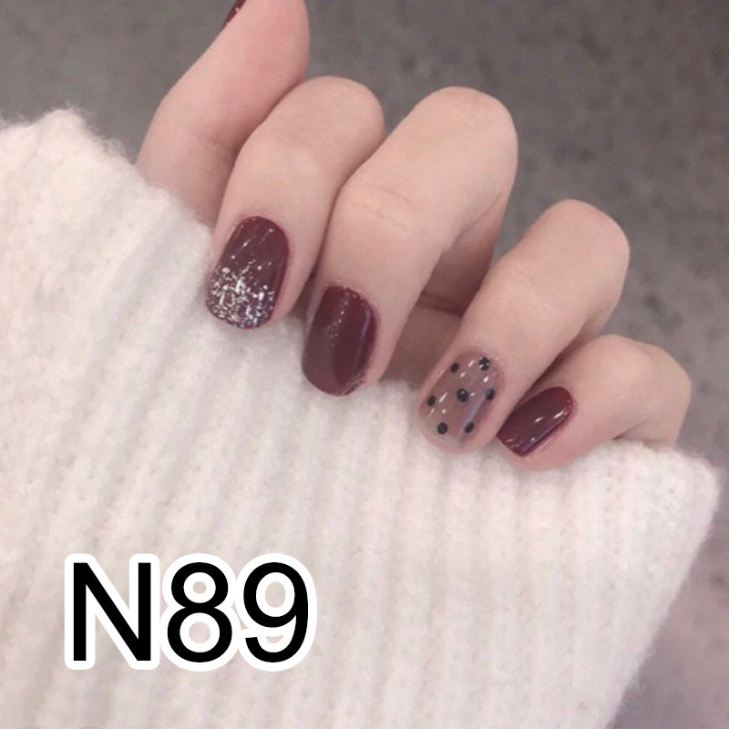 Detail N-Series Kuku Palsu Polos Bening Pendek dan Panjang Fake Nails Aesthetic + Lem