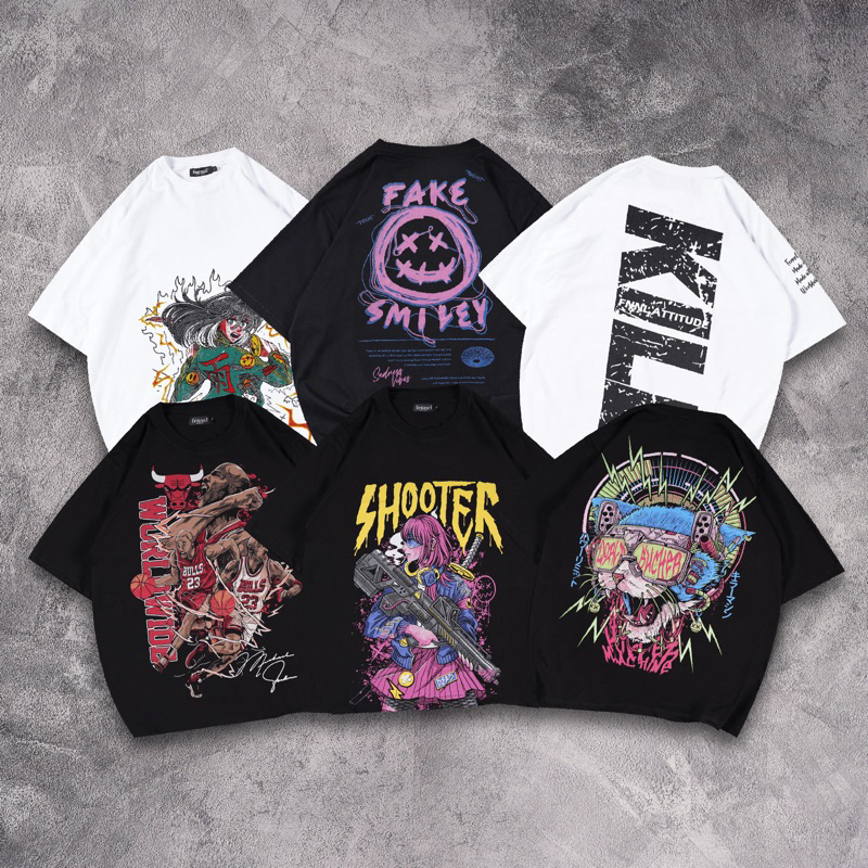Pakaian Pria > Atasan > Kaos > [N00751] T-shirt Oversized Distro Motif // FAKE SMILEY