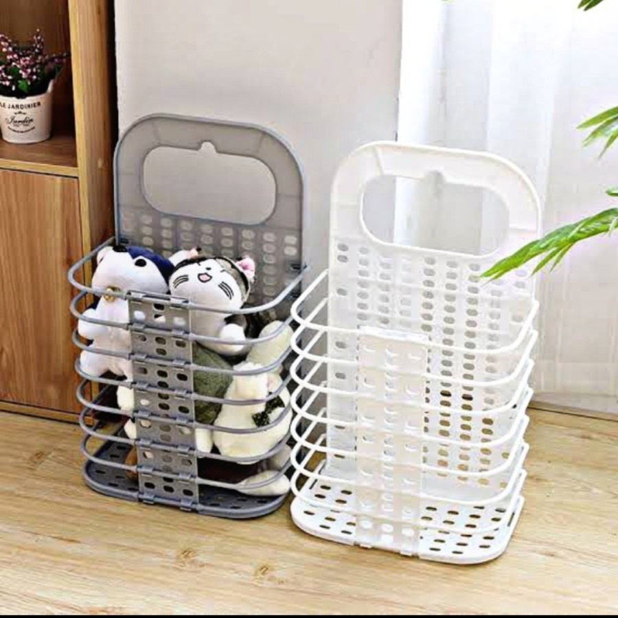 Keranjang barang ini berguna untuk menaroh pakaian kotor, mainan dan barang-barang lainnya. Keranjang terbuat dari bahan plastik sehingga tidak mudah rusak dan dapat menopang beban berat.