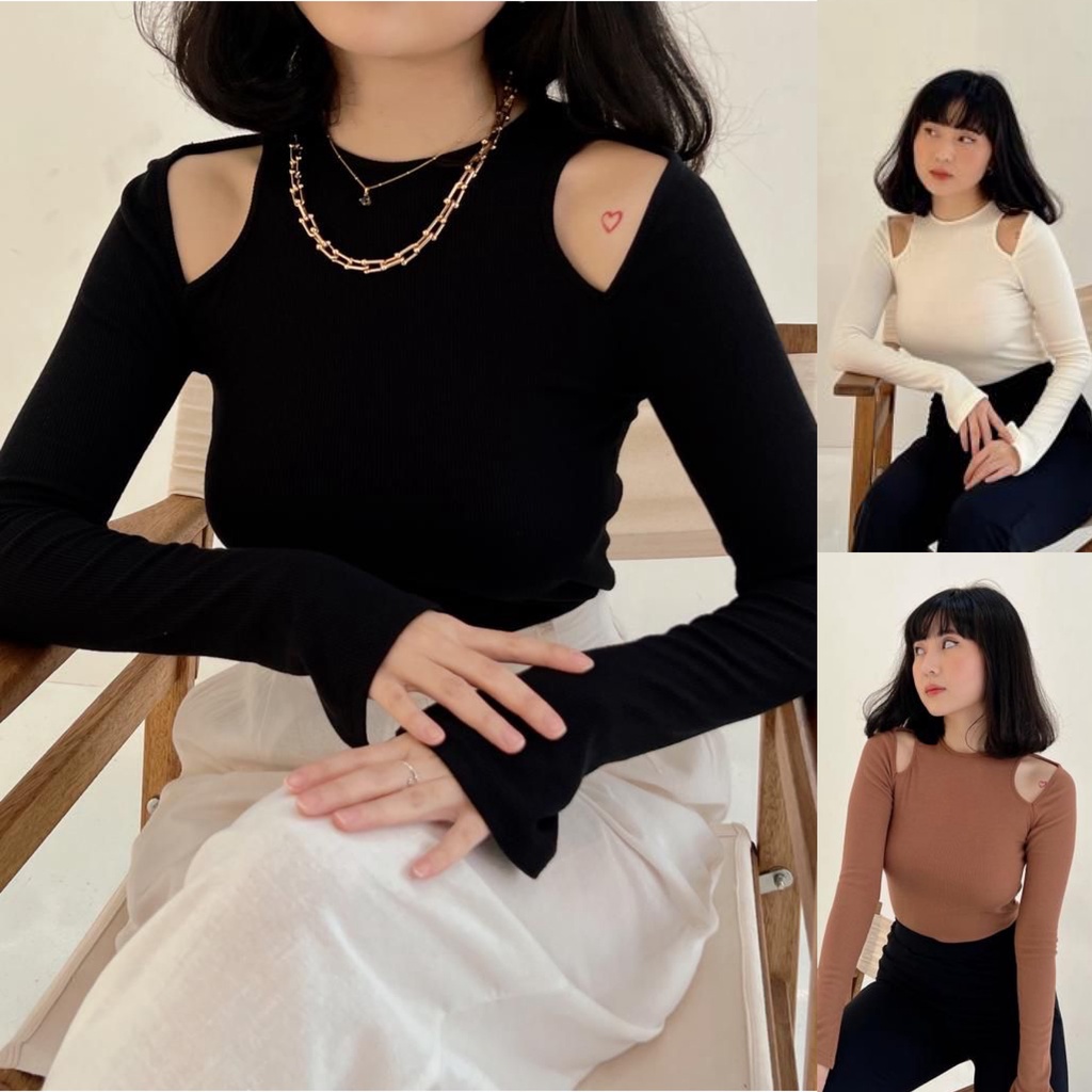 Detail Nabi Top - Longsleeve 001 Basic Colour - Baju Atasan Rib Knit Import - Aeri Top - NKD