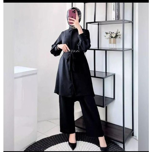 Detail Nabila setelan tunik dan celana terbaru one set crinkle terbaru stelan kekinian muslimah