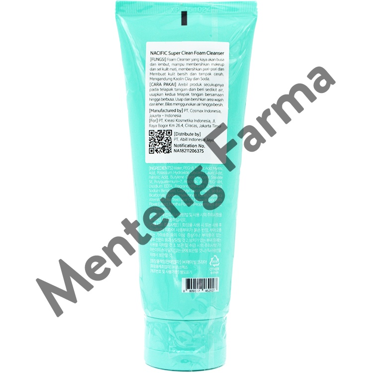 Keunggulan NACIFIC Super Clean Foam Cleanser: - Kaolin clay untuk mengontrol produksi sebum dan membersihkan pori-pori terdalam - Tea tree leaf oil sebagai soothing agent yang mencegah, mengatasi, serta menyamarkan noda jerawat - Peppermint extract yang memberikan sensasi dingin dan mint yang menyegarkan - Merawat kulit sensitif tanpa menyebabkan iritasi - Melembabkan dan mengenyalkan tanpa rasa tertarik dan membuat kering