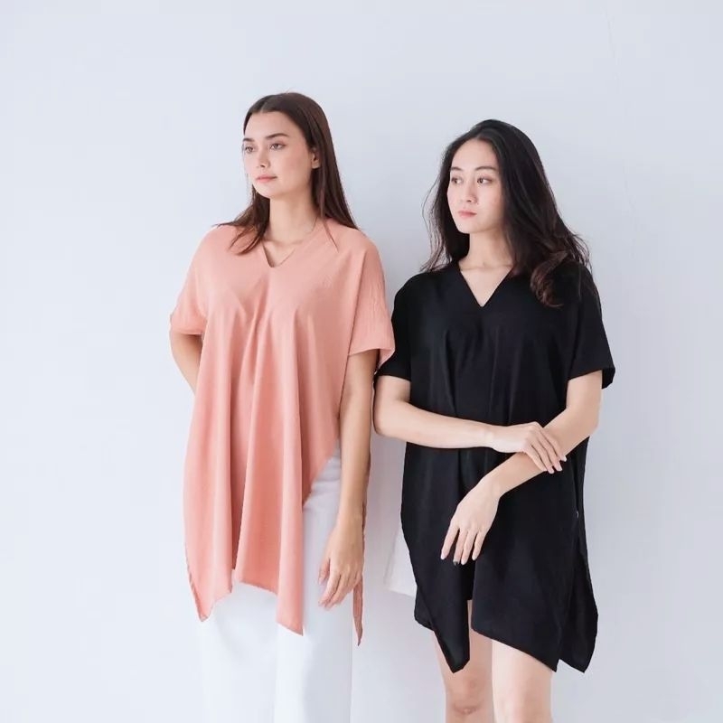 Detail: √ Bahan Airflow Crinkle Premium √ Ld Besar Model Loose √ Kerah V Neck √ Ada Belahan di Kiri dan Kanan