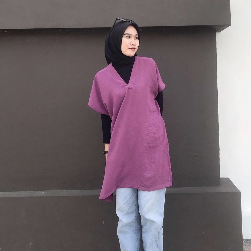 NAGITA LONG SQUARE CRINGKEL AIRFLOW BLOUSE Crinkle Atasan tunik wanita ByAdinda