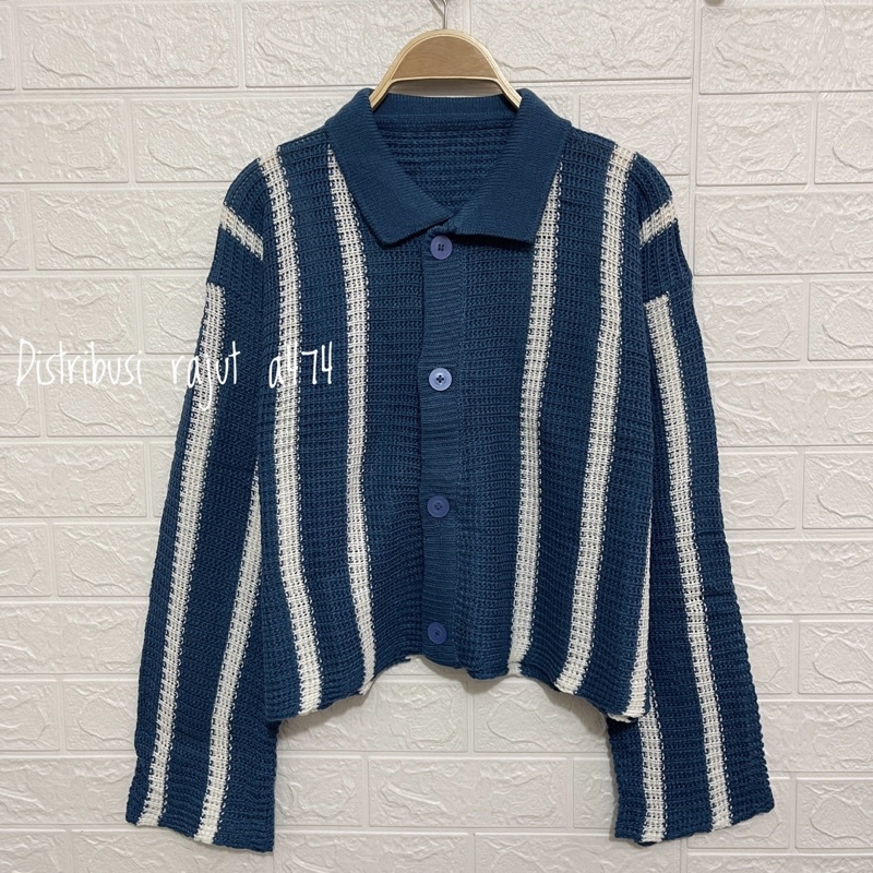 Nagoya Crop Knit Cardigan / Cardigan Wanita Berkerah Premium / Cardigan Stripes Motif
