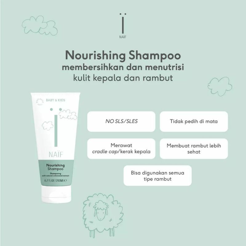 Naif Nourishing Shampoo With Natural Cottonseed Extract adalah sampo bayi yang dikembangkan untuk rambut halus bayi dan kulit kepala, terbuat dari formula yang bebas dari sabun. Formula bahan yang ringan menjadikan rambut lembut dan mengkilap. Terbuat dari bahan-bahan alami seperti ekstrak biji kapas dan gluten free wheat protein powder.