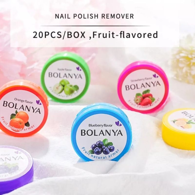 Bolanya Nail Polish Remover adalah kapas penghapus cat kuku yang praktis dan bisa dibawa kemana saja sesuka hati anda. untuk variasi wangi akan dikirimkan RANDOM yah kak. karena kegunaan mereka tetap sama yaitu sebagai penghapus cat kuku.