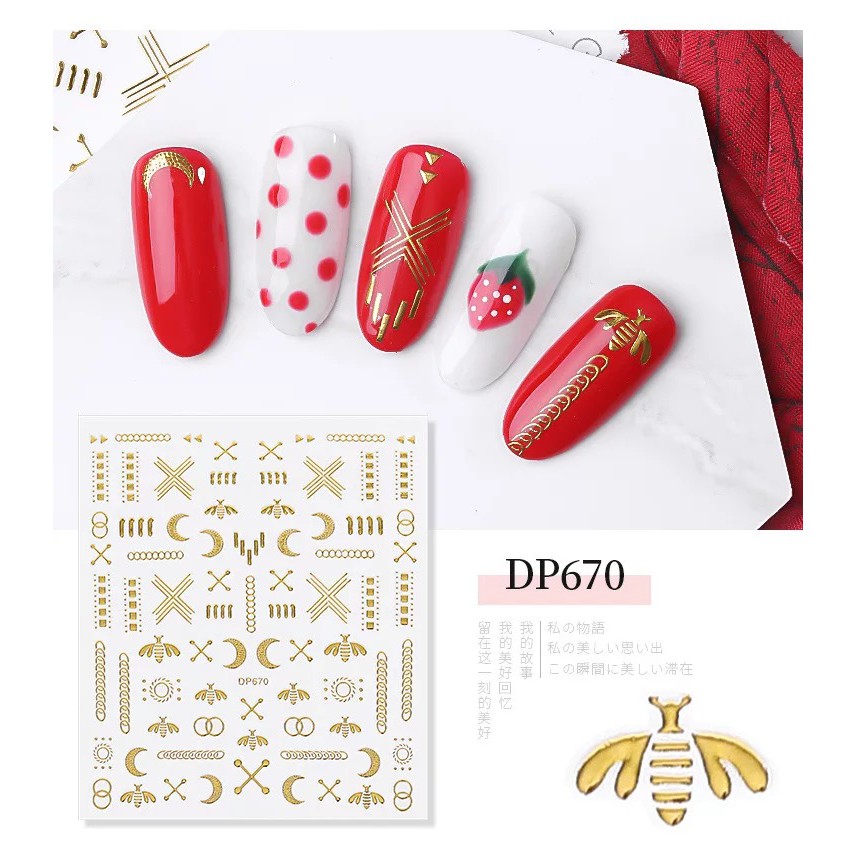 Decoration Nail Art Sticker Kuku warna Emas, Harga Perlembar, Desaign Mixed, Gambar seperti foto produk,