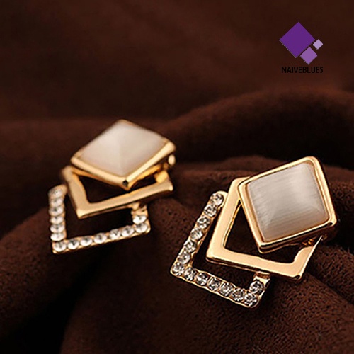 Detail Naiveblue 1 Pasang Anting Tusuk Bentuk Kotak Hollow Elegan Untuk Wanita