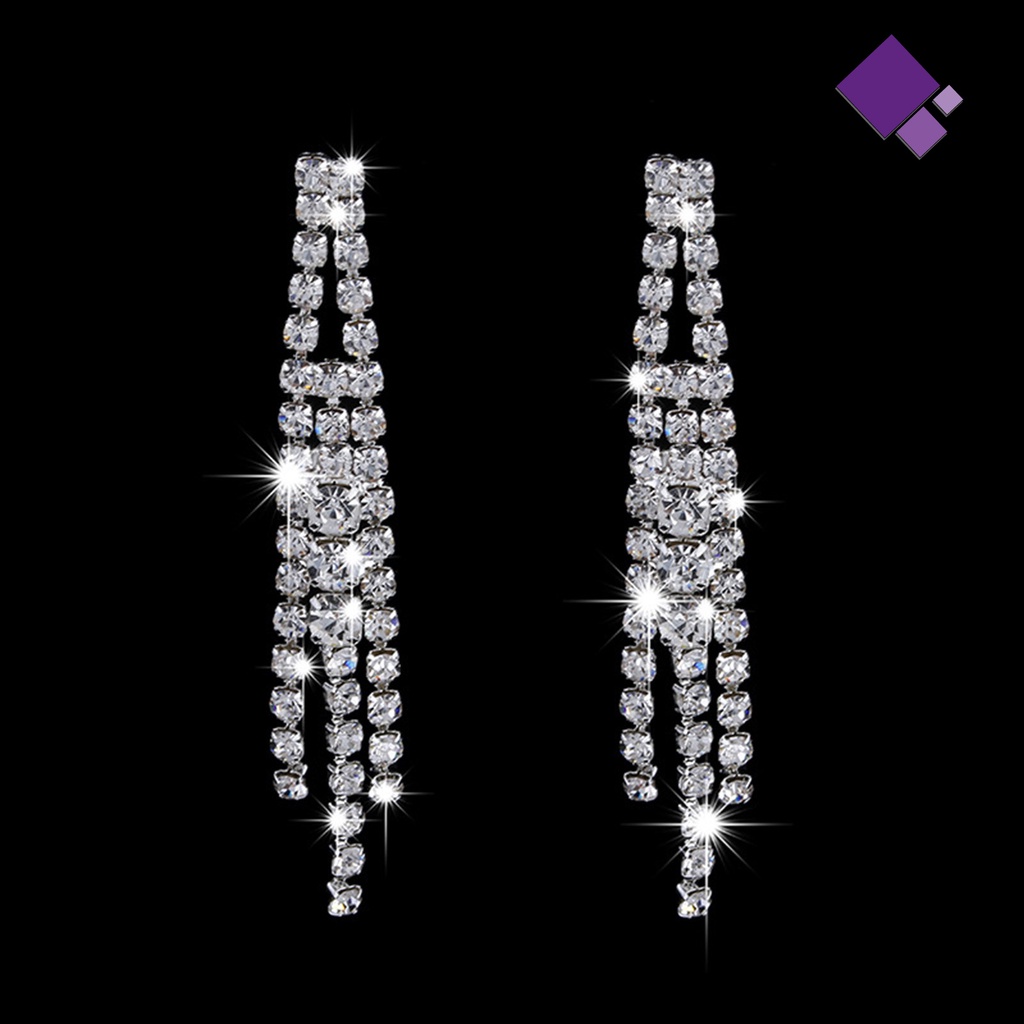 Detail Naiveblue > 1set Set Anting Pengantin Jumbai Berlian Imitasi Perhiasan Keluar Shiny Necklace Earrings