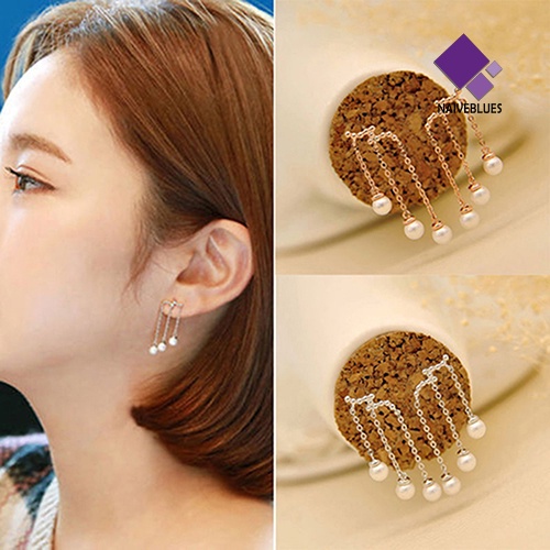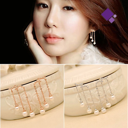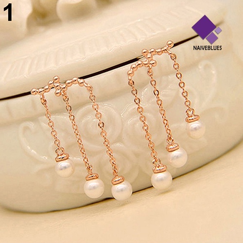Detail Naiveblue > Anting Tusuk Gantung Rumbai Mutiara Imitasi Elegan Untuk Wanita Charms