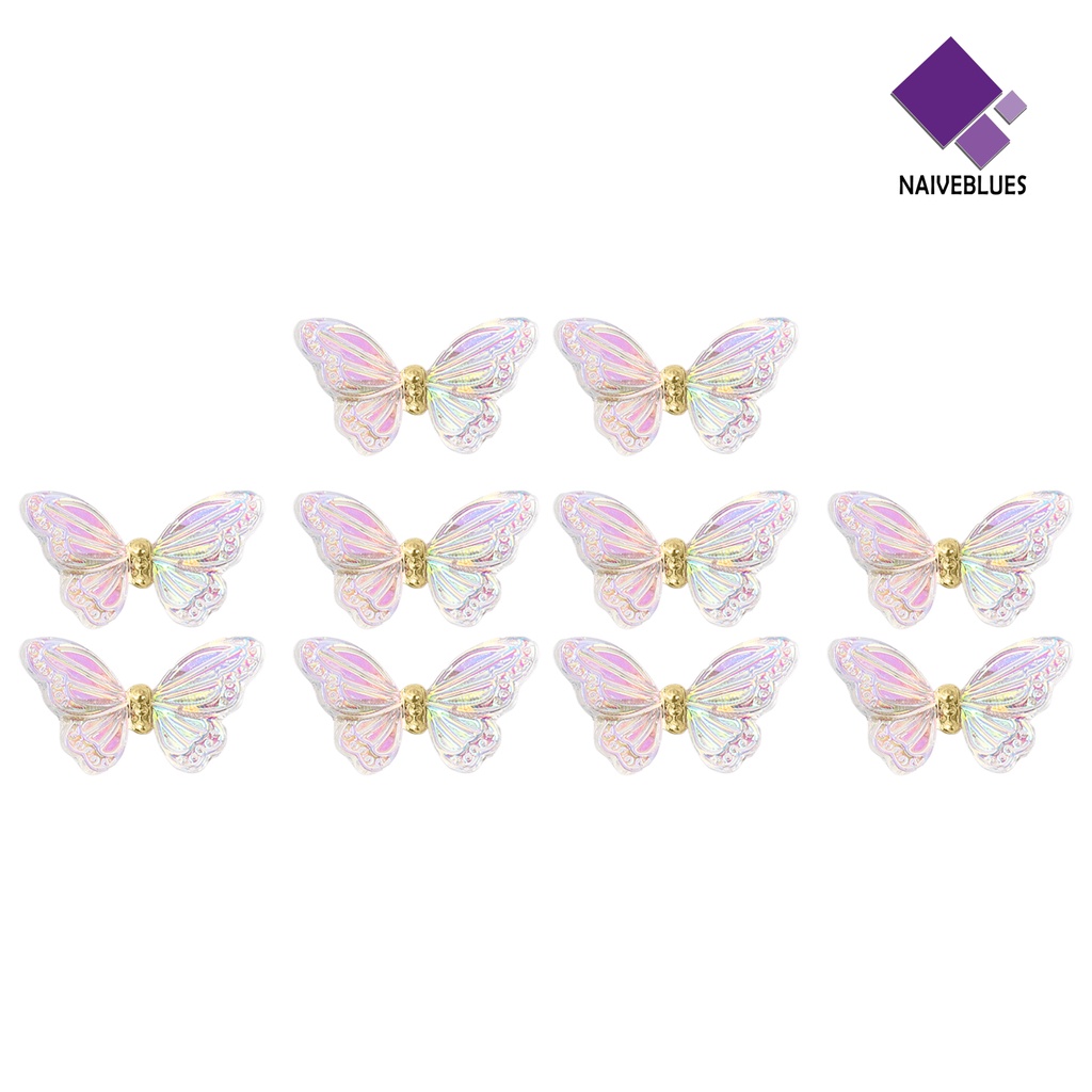 Detail [naiveblues] 10 Pcs Butterfly Nail Charms Berwarna Bersinar Sequin Resin Indah DIY Aksesoris Kuku 3D