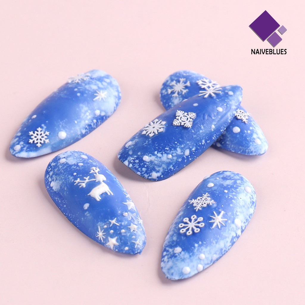 Detail [naiveblues] 100pcs/botol Snowflake Dekorasi Kuku Tempel Kencang Memakai Manicure 3D Nail Art