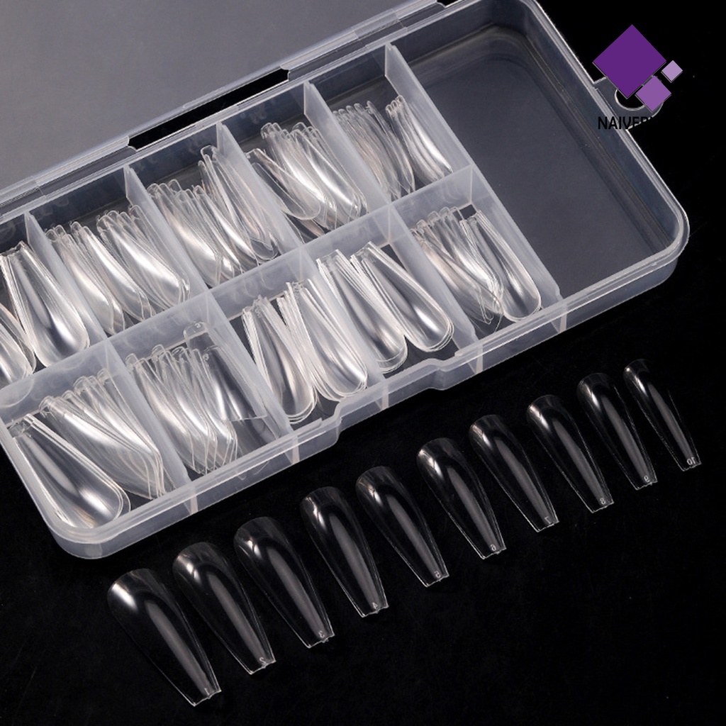 Detail [naiveblues] 100pcs/kotak Kuku Palsu Tetesan Air T-Shaped Pendek Kepala Bulat Ultra Tipis Transparan Buatan