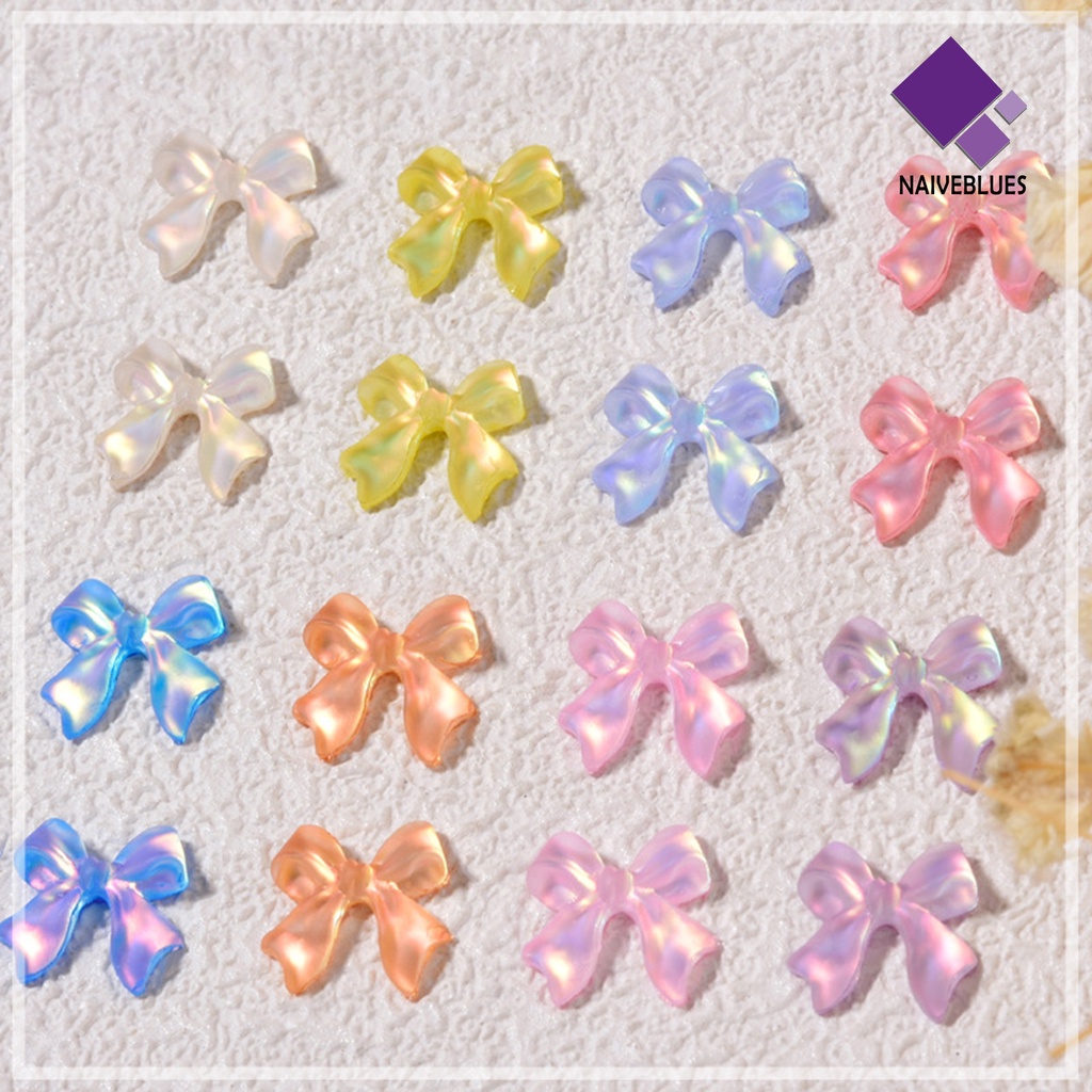 Detail [naiveblues] 10pcs/set Aurora Efek Kuku Ikatan Simpul Ornamen Penembus Es 3D Ikatan Simpul Manicure Dekorasi Untuk