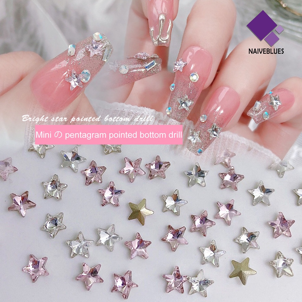Detail [naiveblues] 10pcs/tas Kuku Kristal Imitasi Tiga Dimensi Bersinar Tidak Jatuh Glitter Mini Putih Pink Dasar Kuku