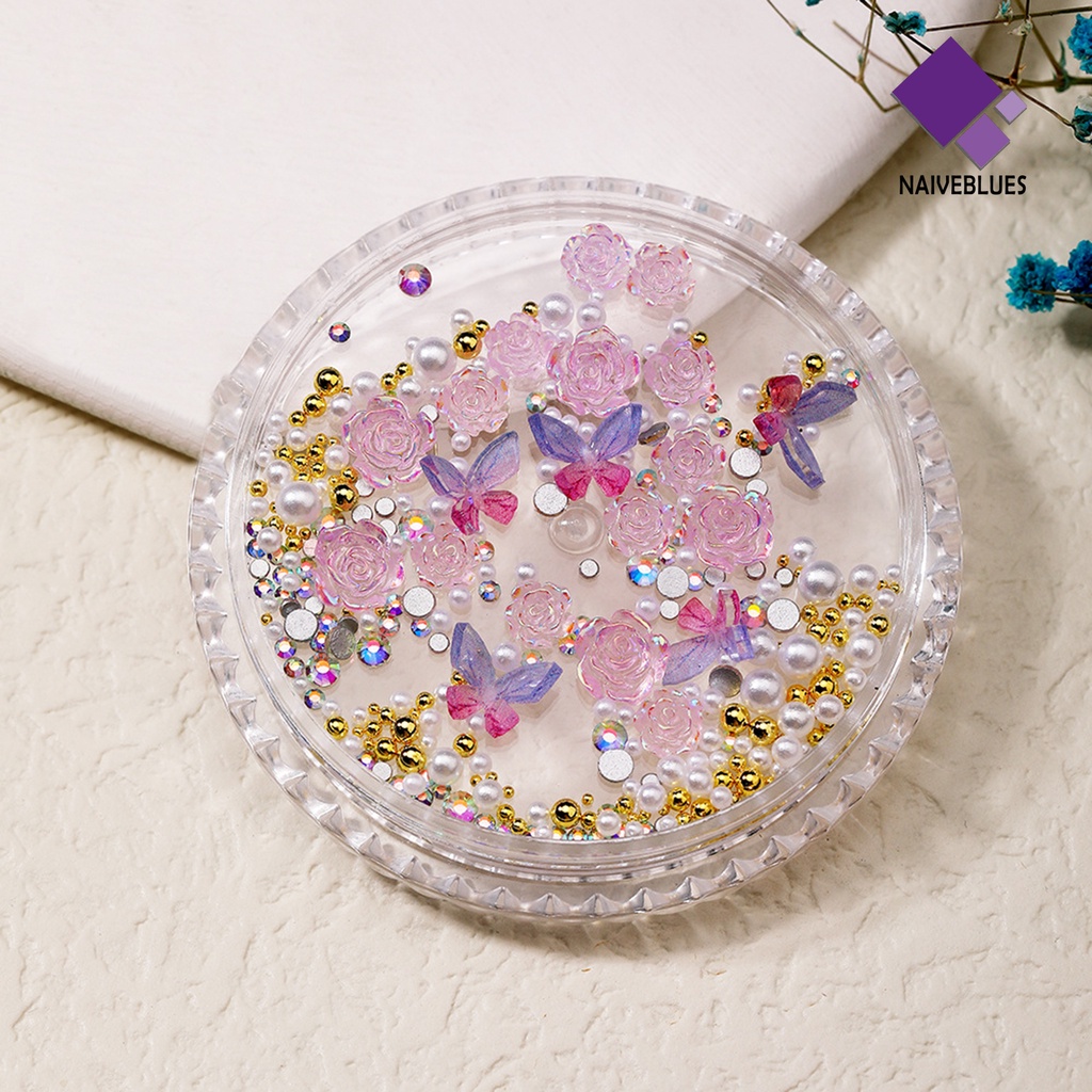 Detail [naiveblues] 1kotak Aksesoris Kuku Tidak Jatuh Bersinar Berkilau DIY 3D Camelia Faux Nail Art