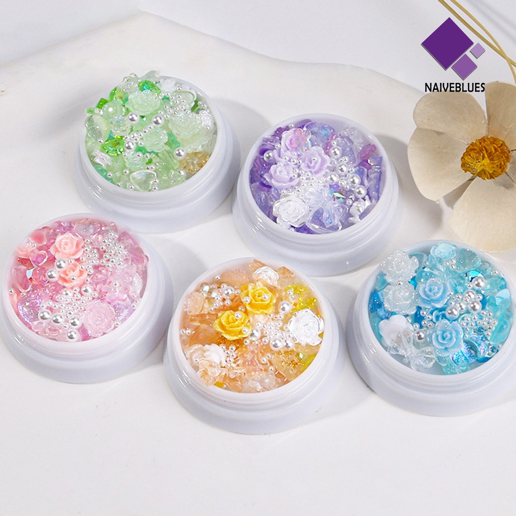 Detail [naiveblues] 1kotak Mutiara Imitasi Ikatan Simpul Bentuk Bor Resin Warna-Warni Dekorasi Gadis Bunga Mawar