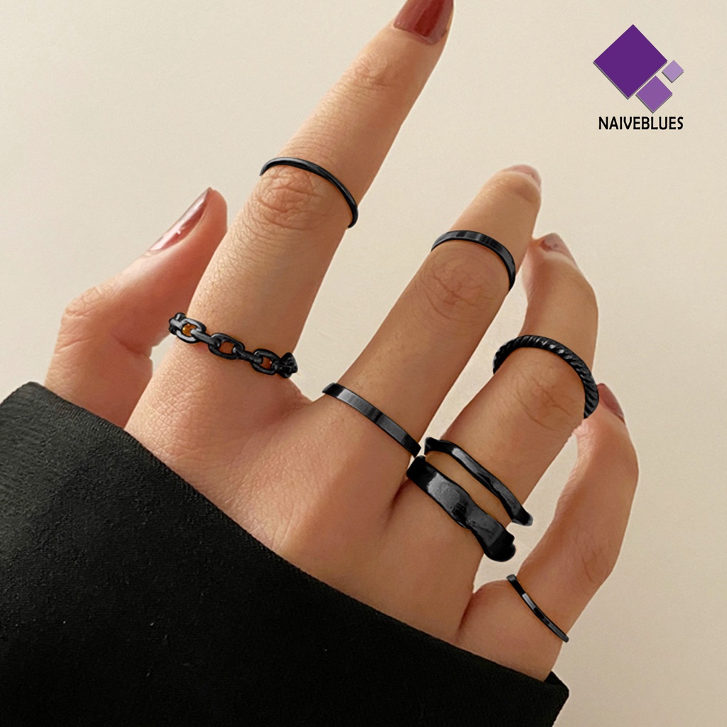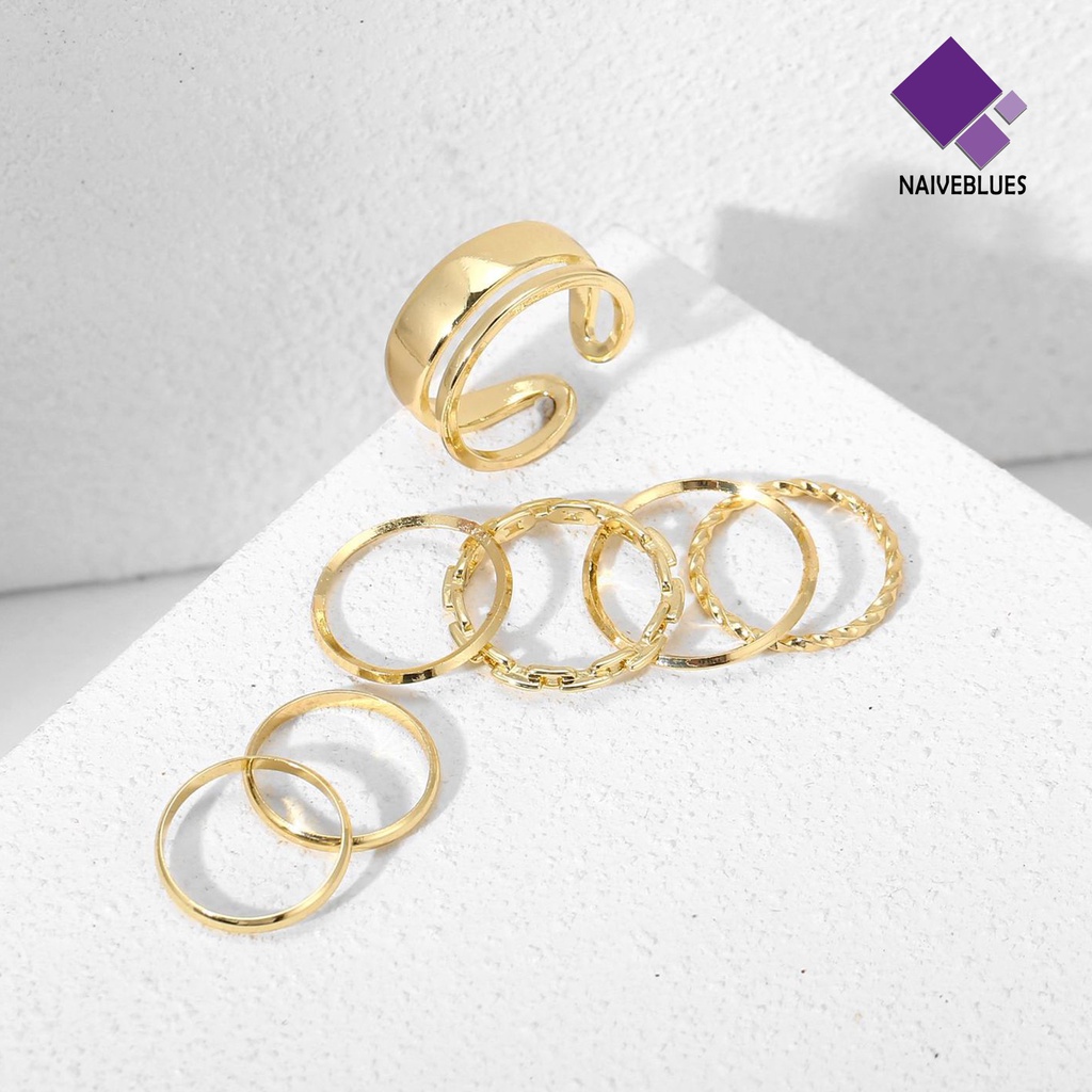 Detail < Naiveblues > 1set Cincin Buku Jari Geometris Punk Unisex Electroplating Long Finger Rings Club