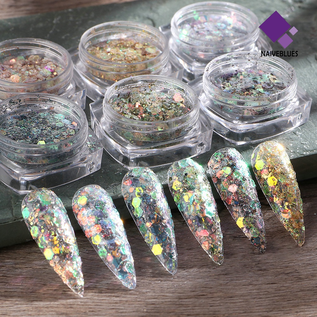 Detail [naiveblues] 1set Nail Sequin Sparkling Ultra-Tipis Bersinar Visual Warna Vibrant Lebar Hias Mudah