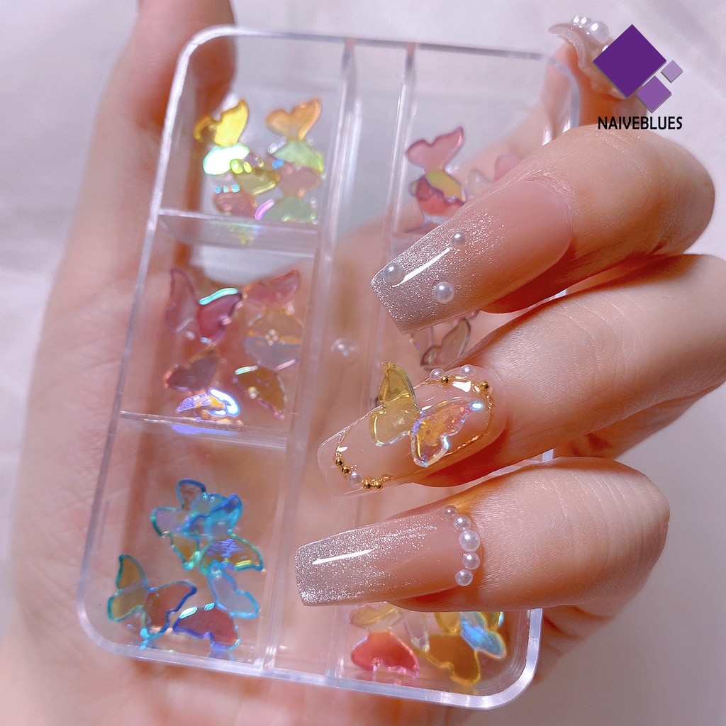 Detail [naiveblues] 24pcs/set Ornamen Kuku Tempel Tahan Jatuh Mudah Dilepas Tidak Luntur Butterfly Nail Charms Salon Kuku