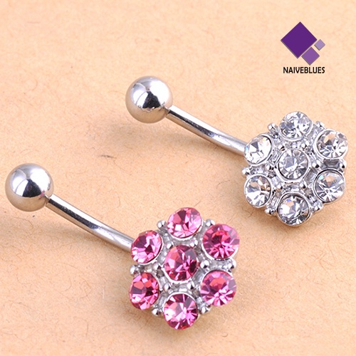 Detail < Naiveblues > 7perlindung Puting Bulat Berlian Imitasi Bar Cincin Perut Tindik Tubuh