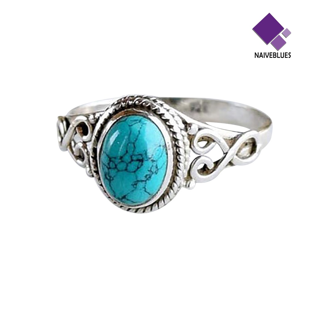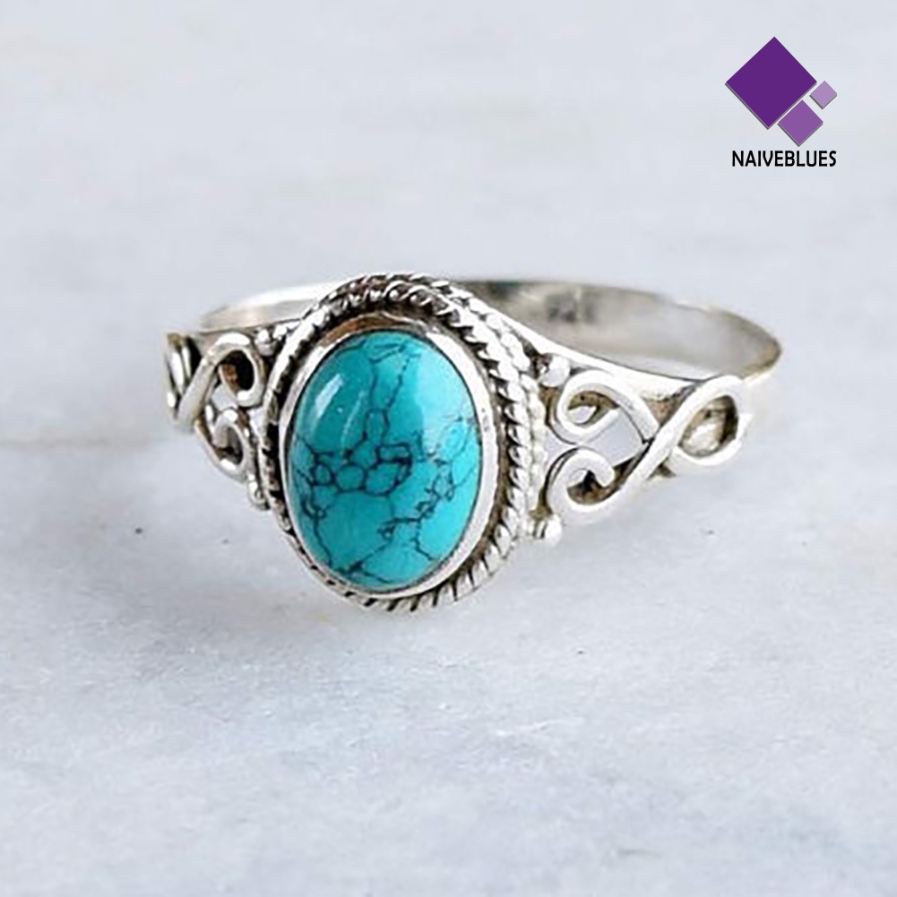 < Naiveblues > Antik Pirus Batu Permata Alami Pengantin Pernikahan Pertunangan Vintage Ring