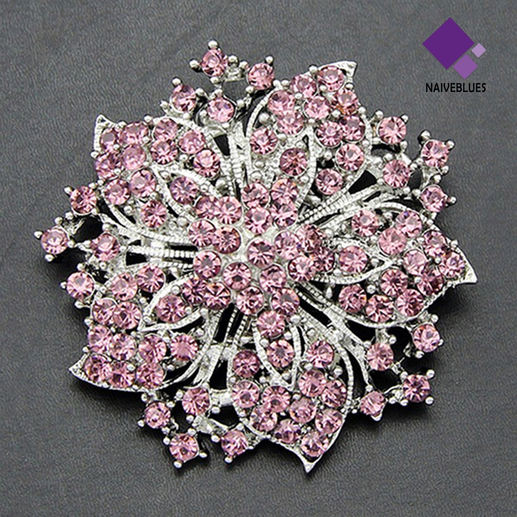 < Naiveblues > Bros Pin Indah Anti Karat Berlapis Perak Berlian Imitasi Mekar Bunga Breastpin Pacaran