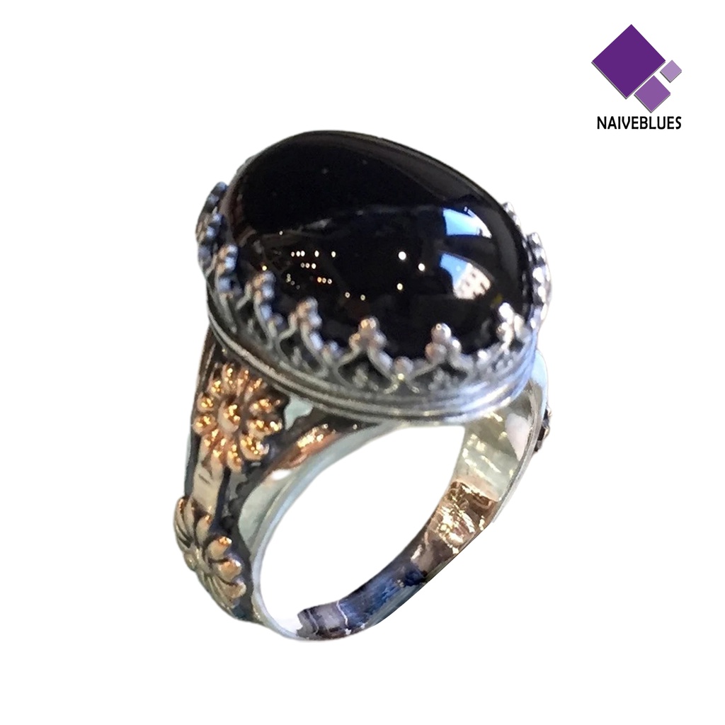 Detail < Naiveblues > Cincin Unisex Lebar Gaya Batu Ukir Pola Bunga Perhiasan Cincin Imitasi