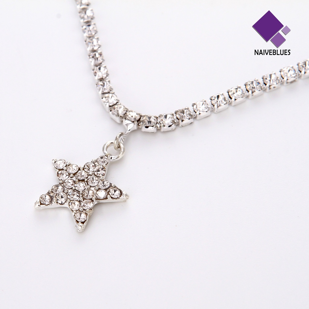 Aksesoris Fashion > Gelang Tangan & Bangle > < Naiveblues > Gelang Kaki Liontin Bintang Berujung Lima Adjustable Perhiasan Berlian Imitasi Hias Foot Untuk Wanita