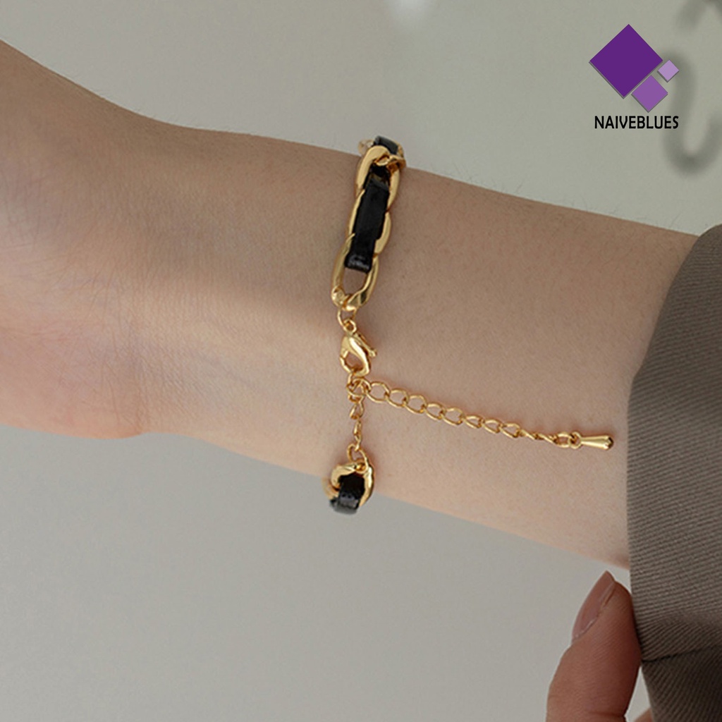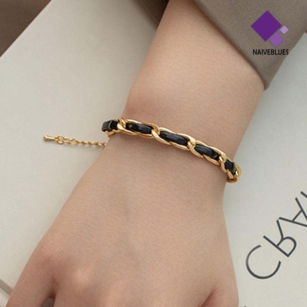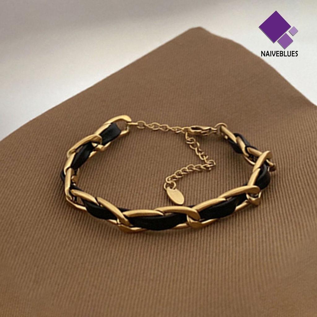 Detail < Naiveblues > Gelang Lilit Logam Retro Adjustable Bahan Kulit Imitasi Wanita Braided Untuk Anniversary
