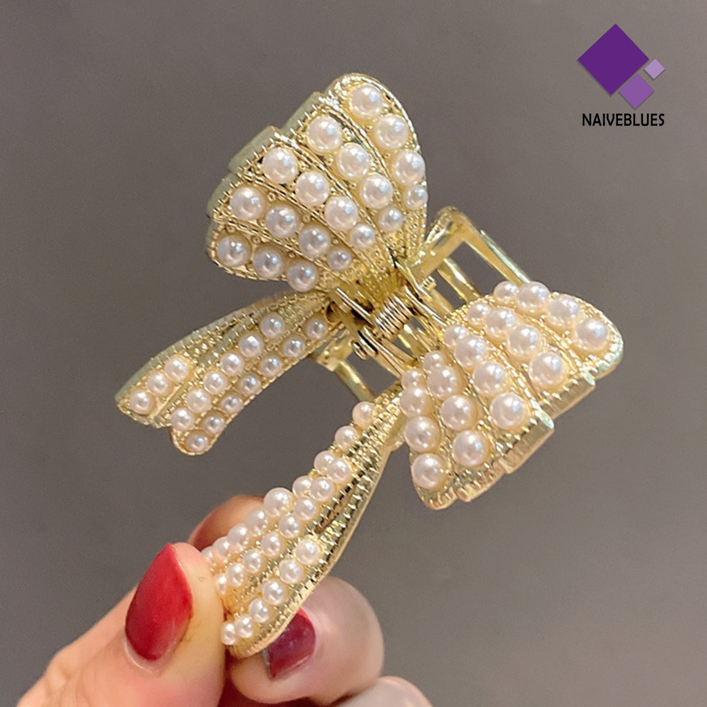 Detail < Naiveblues > Hair Claw Butterfly Gaya Korea Wanita Mutiara Mengkilap Klip Rambut Pakaian Sehari-Hari