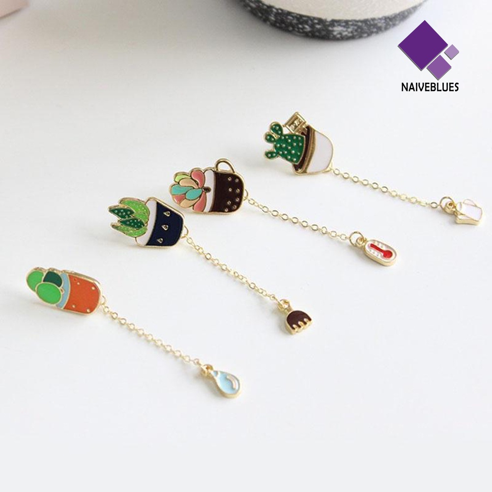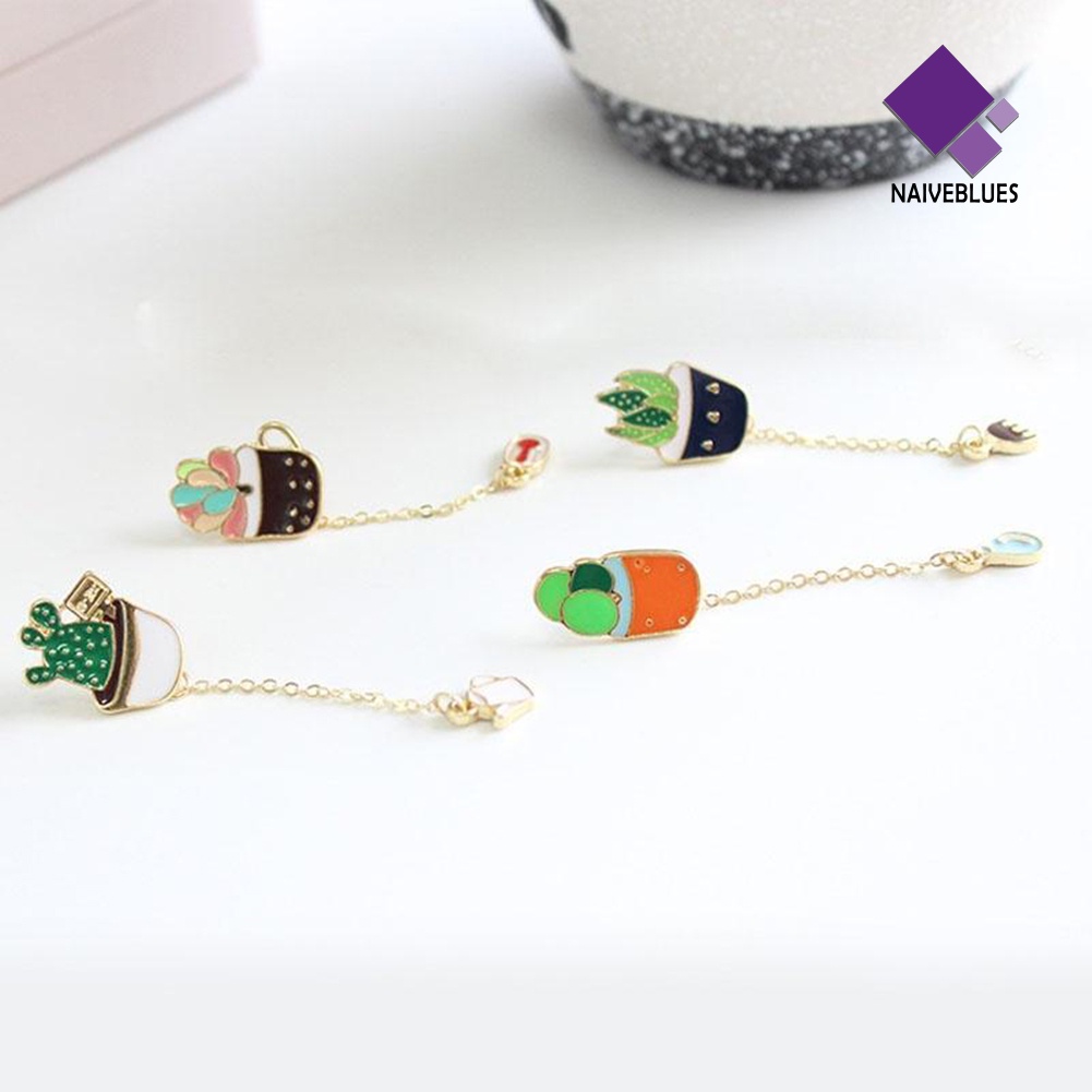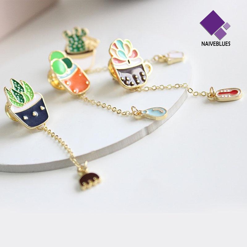Detail < Naiveblues > Indah Unisex Sukulen Pot Kaktus Liontin Bros Lencana Tas Ornamen