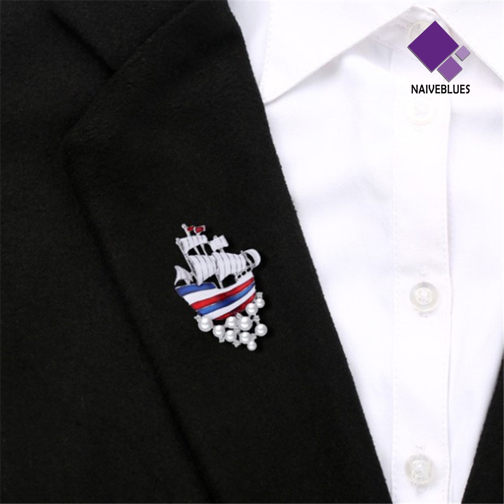 < Naiveblues > Perahu Layar Mutiara Imitasi Hias Bros Wanita Gaun Kemeja