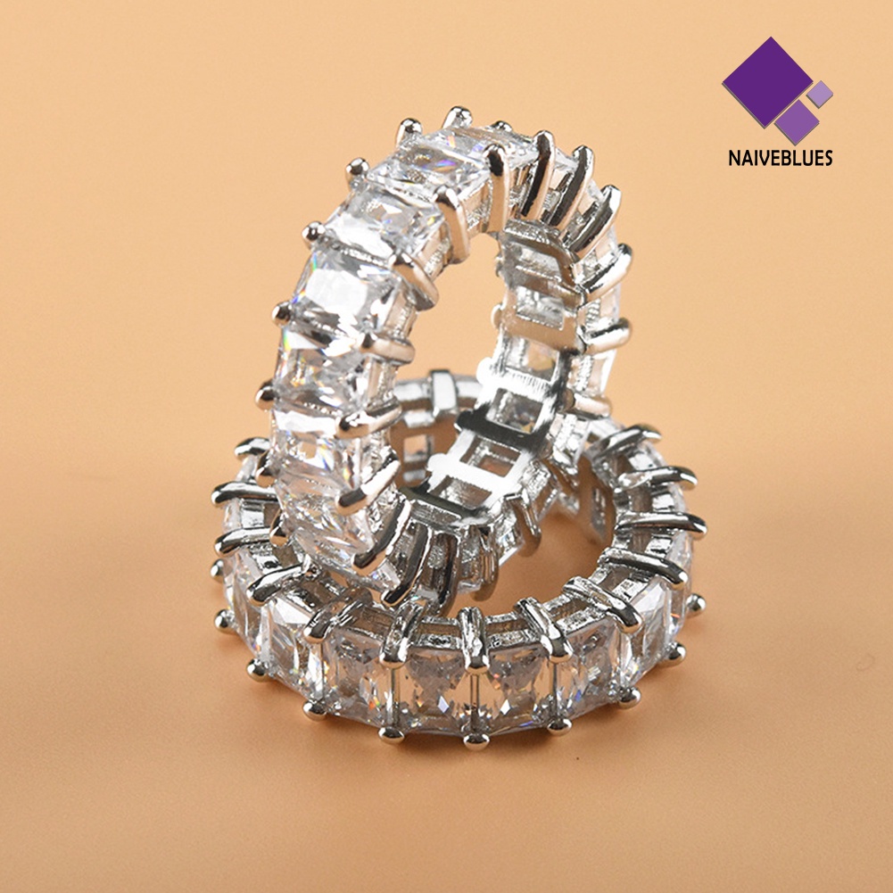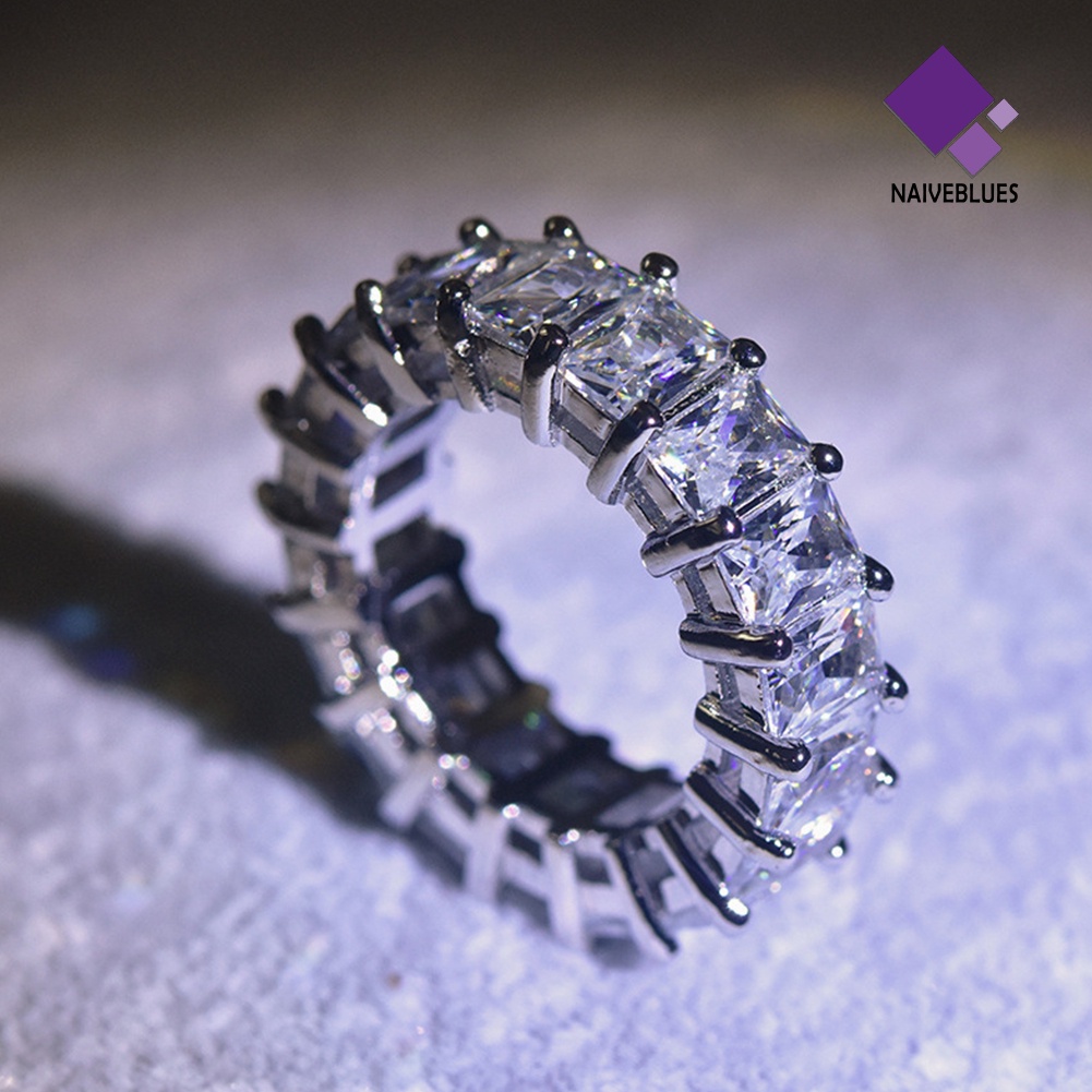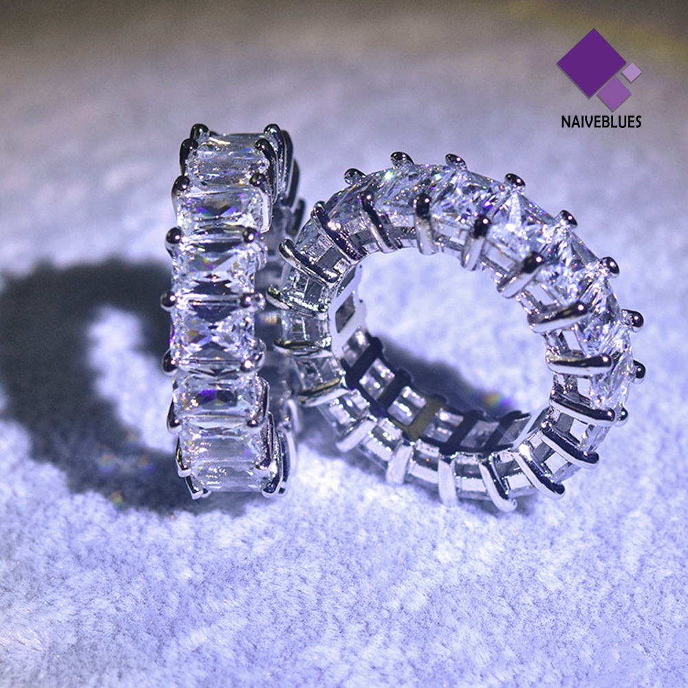 < Naiveblues > Pernikahan Pertunangan Putri Potong Berlian Imitasi Bertatahkan Cincin Jari Pengantin