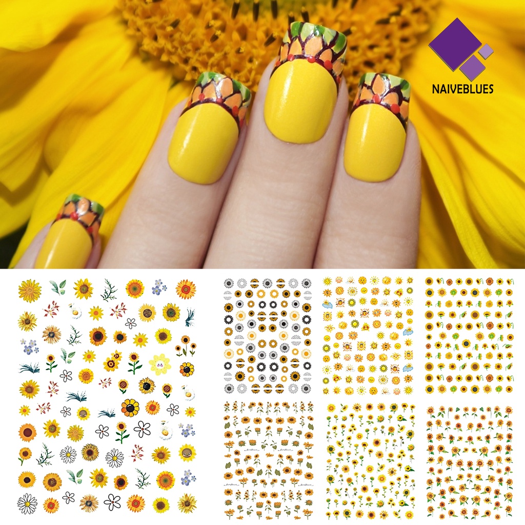 Detail [naiveblues] Stiker Kuku Bentuk Bunga Matahari Efek 3D Ultra Tipis Floral Nail Art Decals Untuk