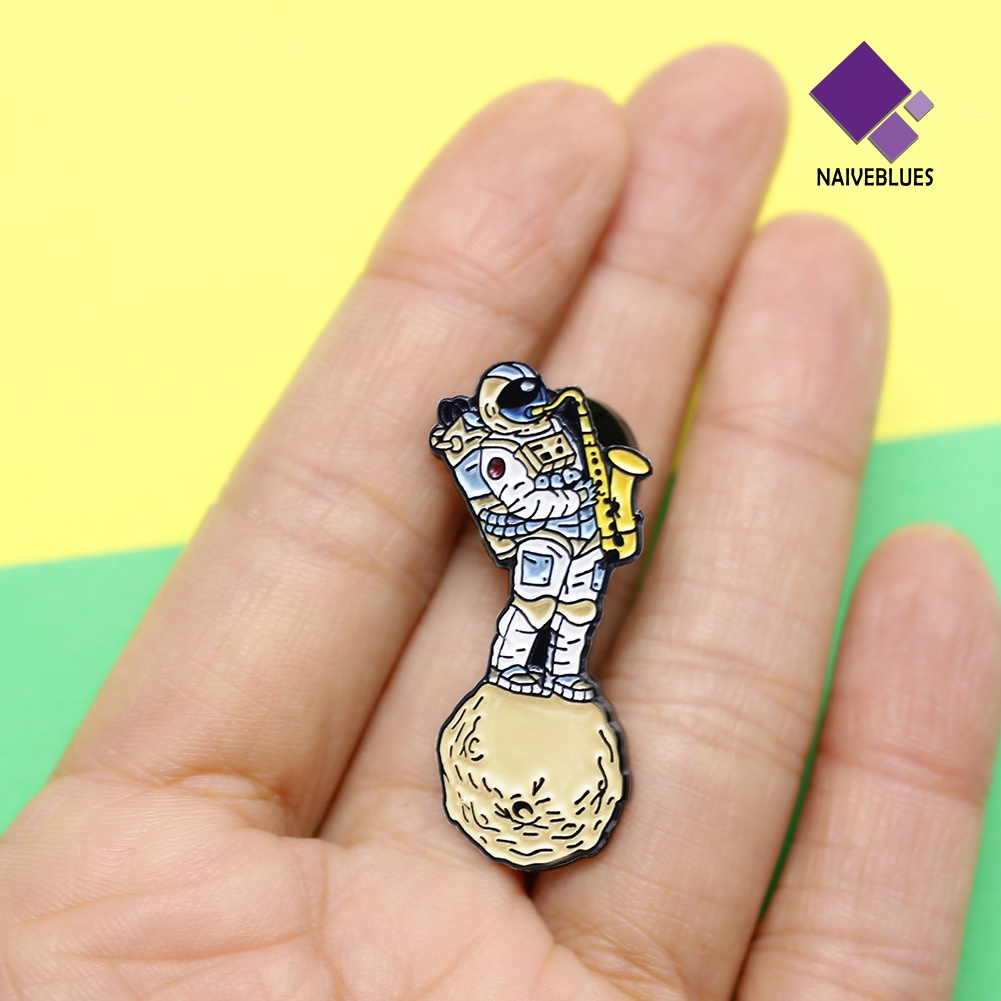 < Naiveblues > Unisex Astronot Bermain Saxophone Enamel Bros Pin Pakaian Tas Topi