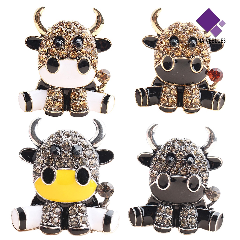 Detail < Naiveblues > Unisex Berlian Imitasi Bertatahkan Zodiak Sapi Sapi Bros Pin Perhiasan Pakaian Aksesori